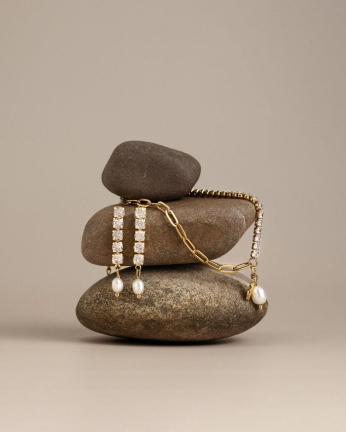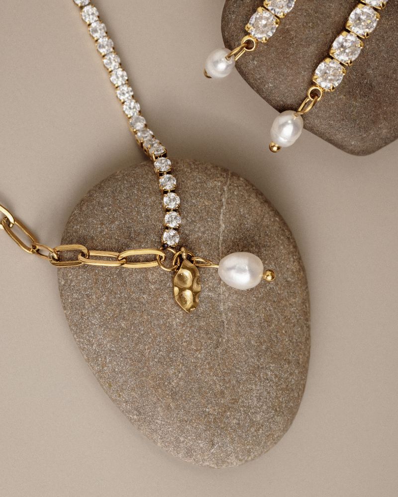Minden ékszerünket a legmagasabb minőségű vákuumbevonatos rozsdamentes acélból készítjük. A felhasznált anyagok biztonságosnak tekinthetők allergiások vagy érzékeny bőrűek számára. Arannyal bevont rozsdamentes acélból és gondosan válogatott valódi édesvízi igazgyöngyökkel készült ékszereinket évekig viselheti, mindegyik darab vízálló, a színük nem fakul ki és nem fog elszíneződni.
